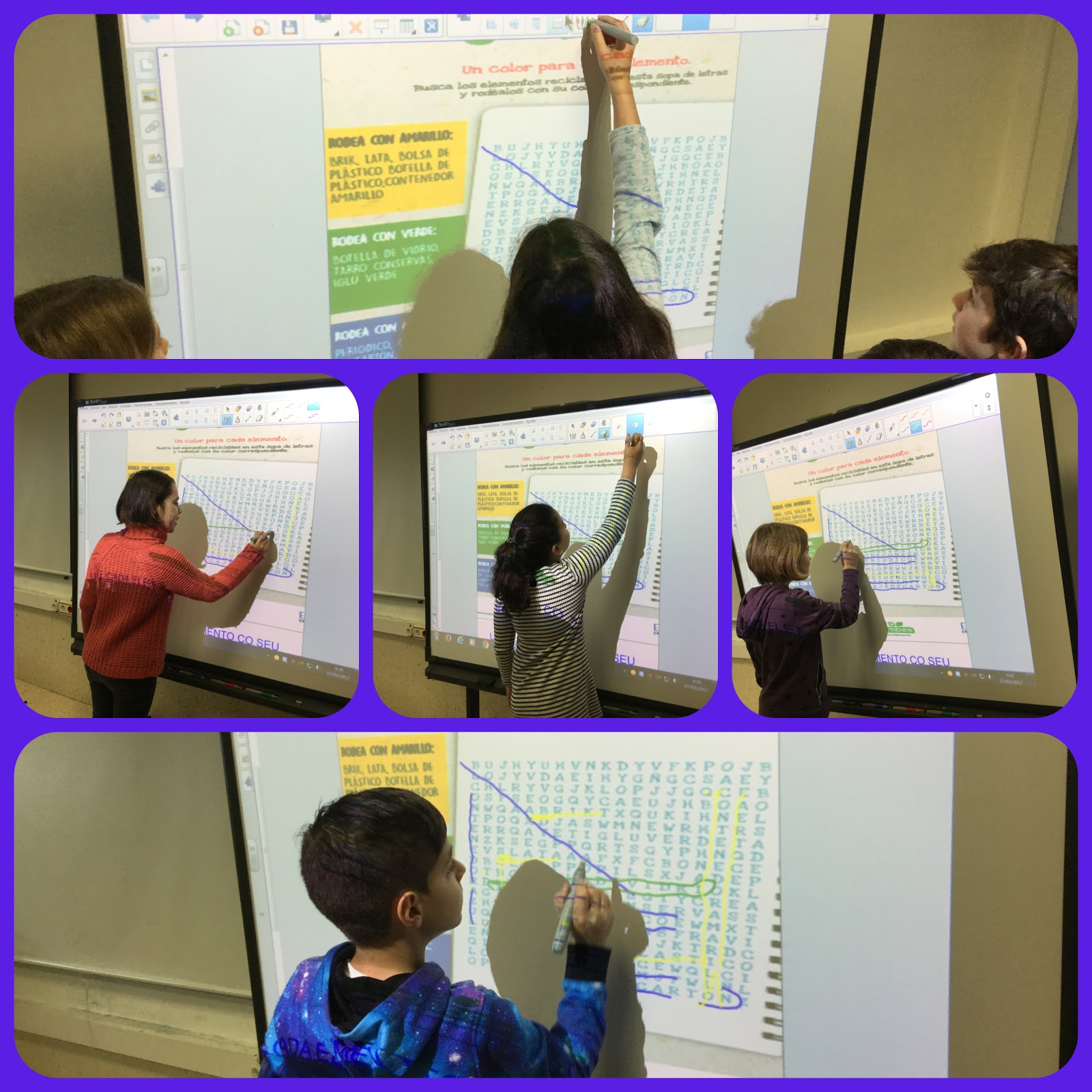 Seguimos traballando a reciclaxe na aula Tic's utilizando a Pizarra Dixital Interactiva.